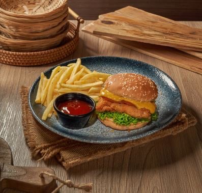 132 Cheesy Crispy Burger & Ice Lemon Tea